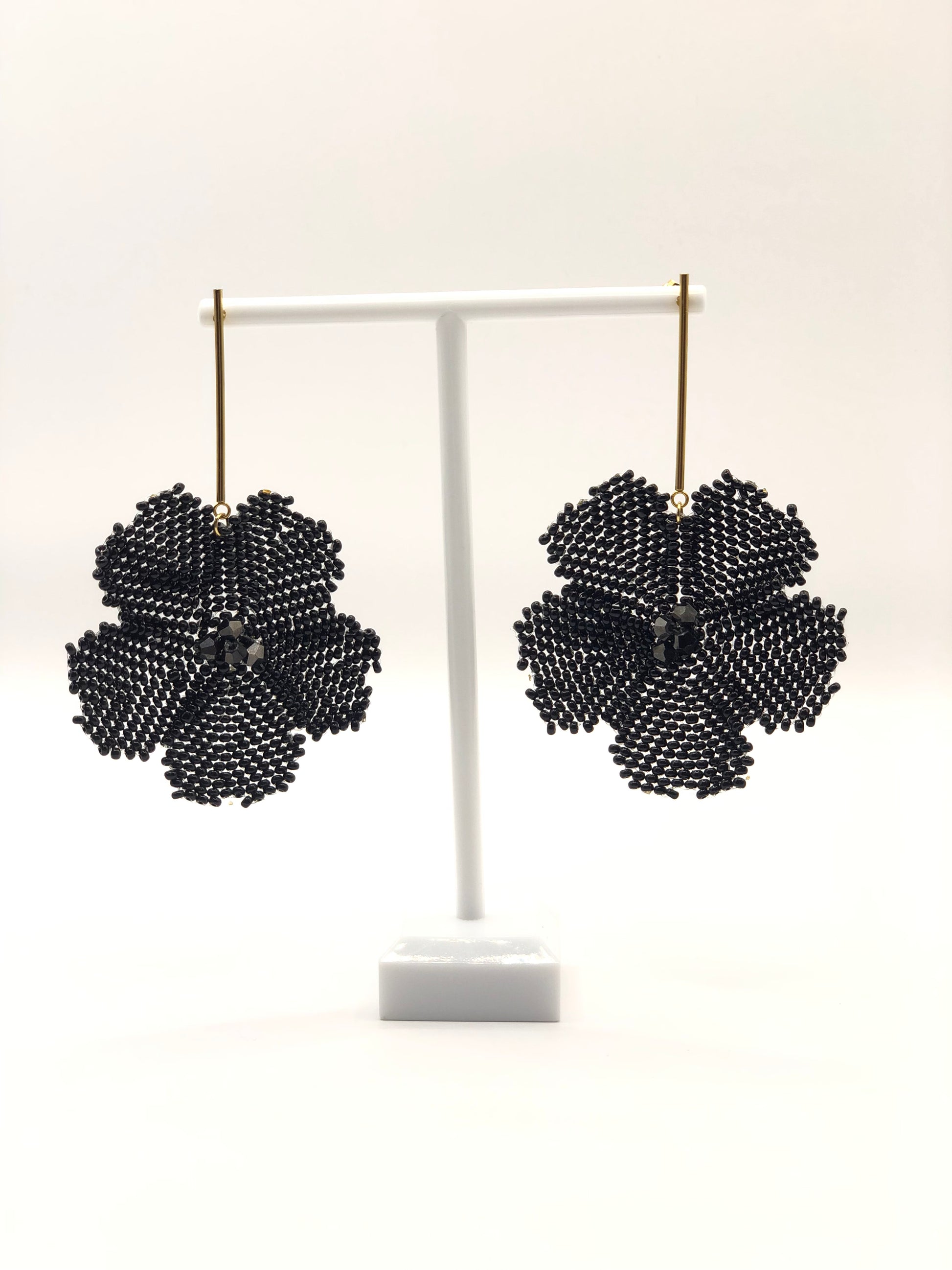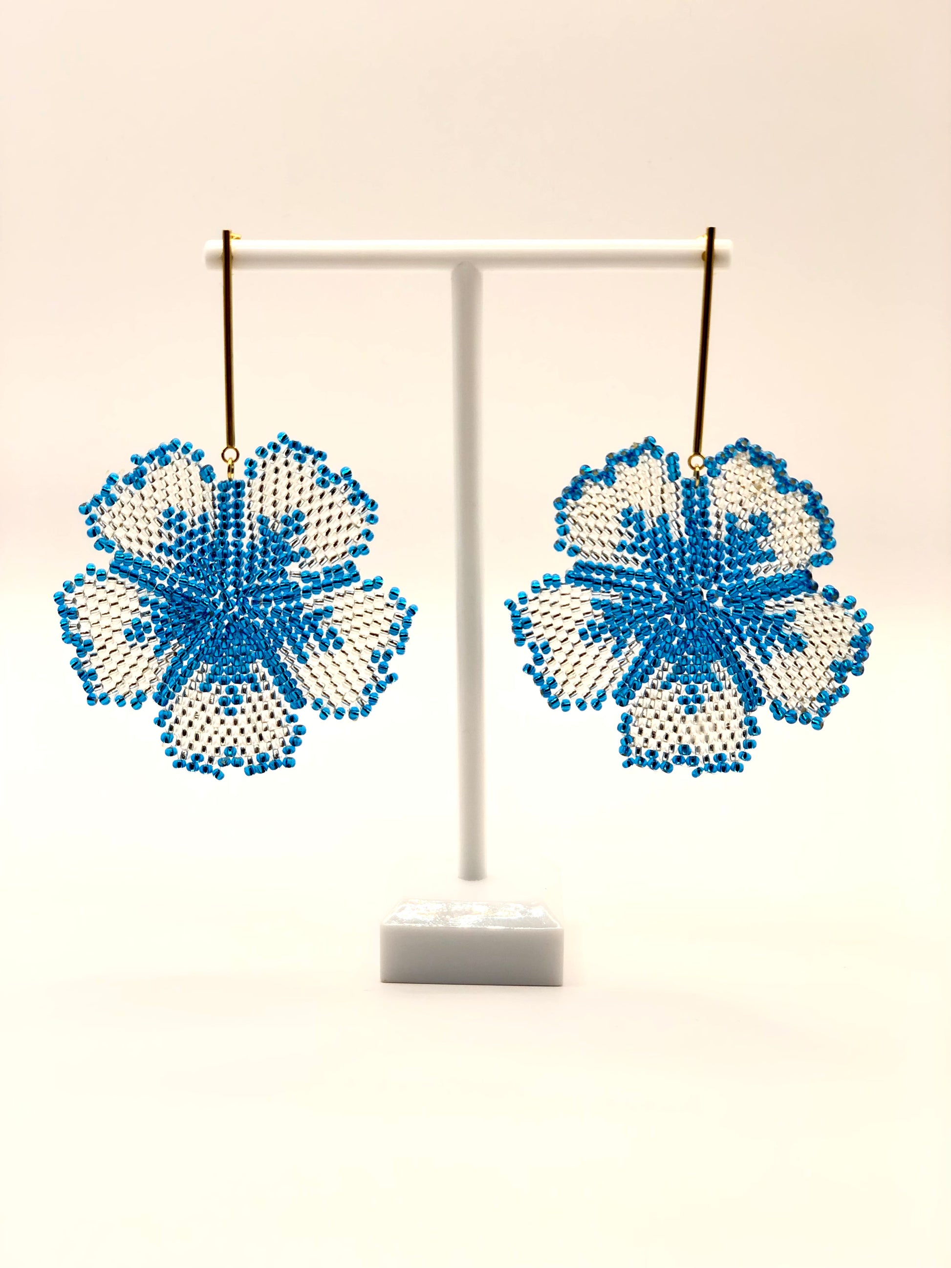 Pendiente tejido con chaquira checa, Murano y herrajes en acero inoxidable